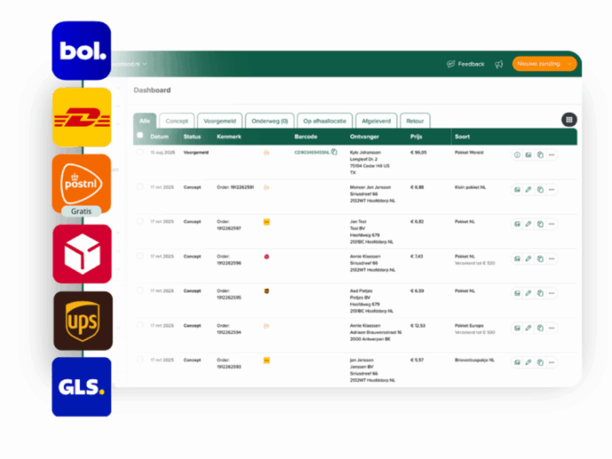 - Print gratis en onbeperkt labels uit volgens de voorwaarden van jouw PostNL contract.